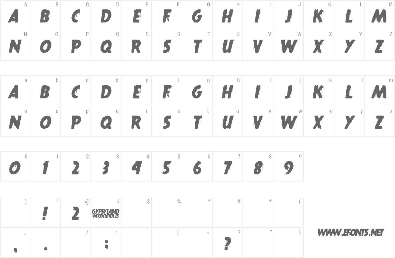 Sample characters Gypsyland Font