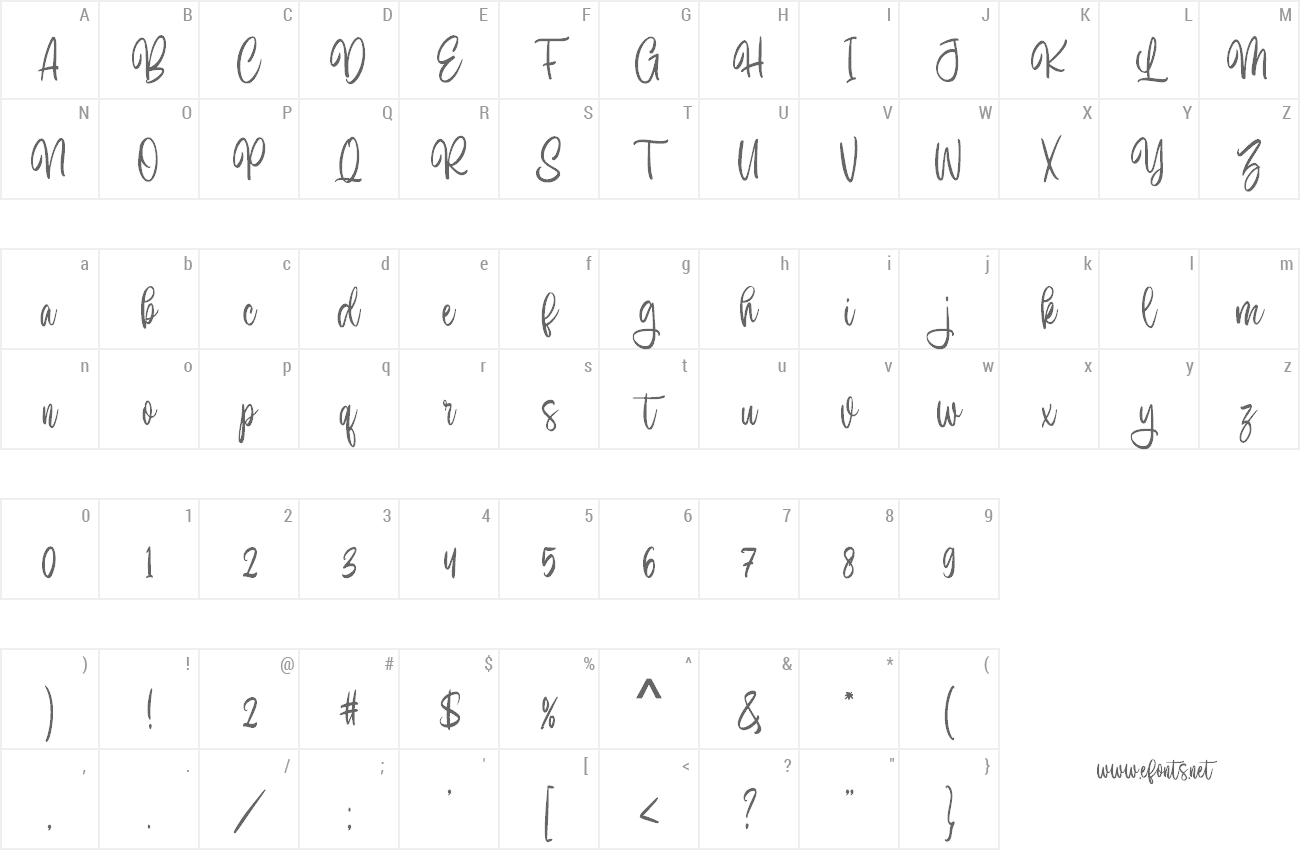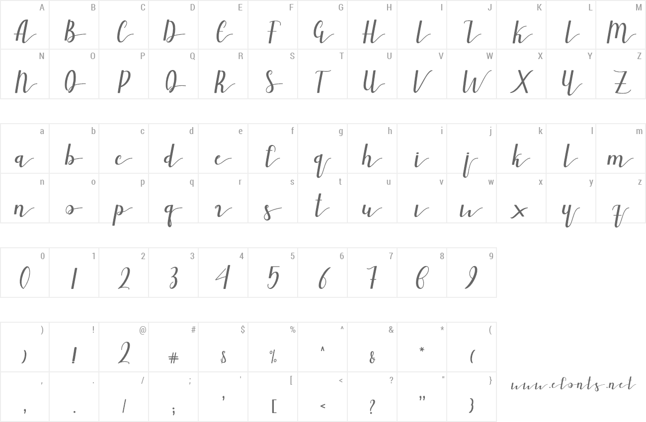 Sample characters Gracelyn Font