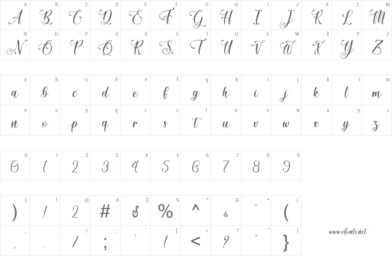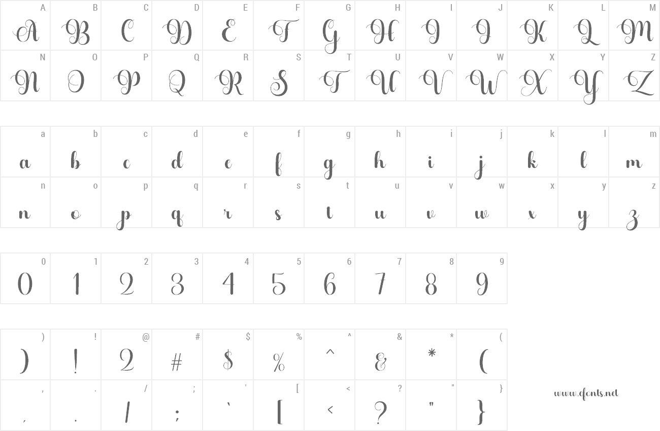 Sample characters Lorestta Font