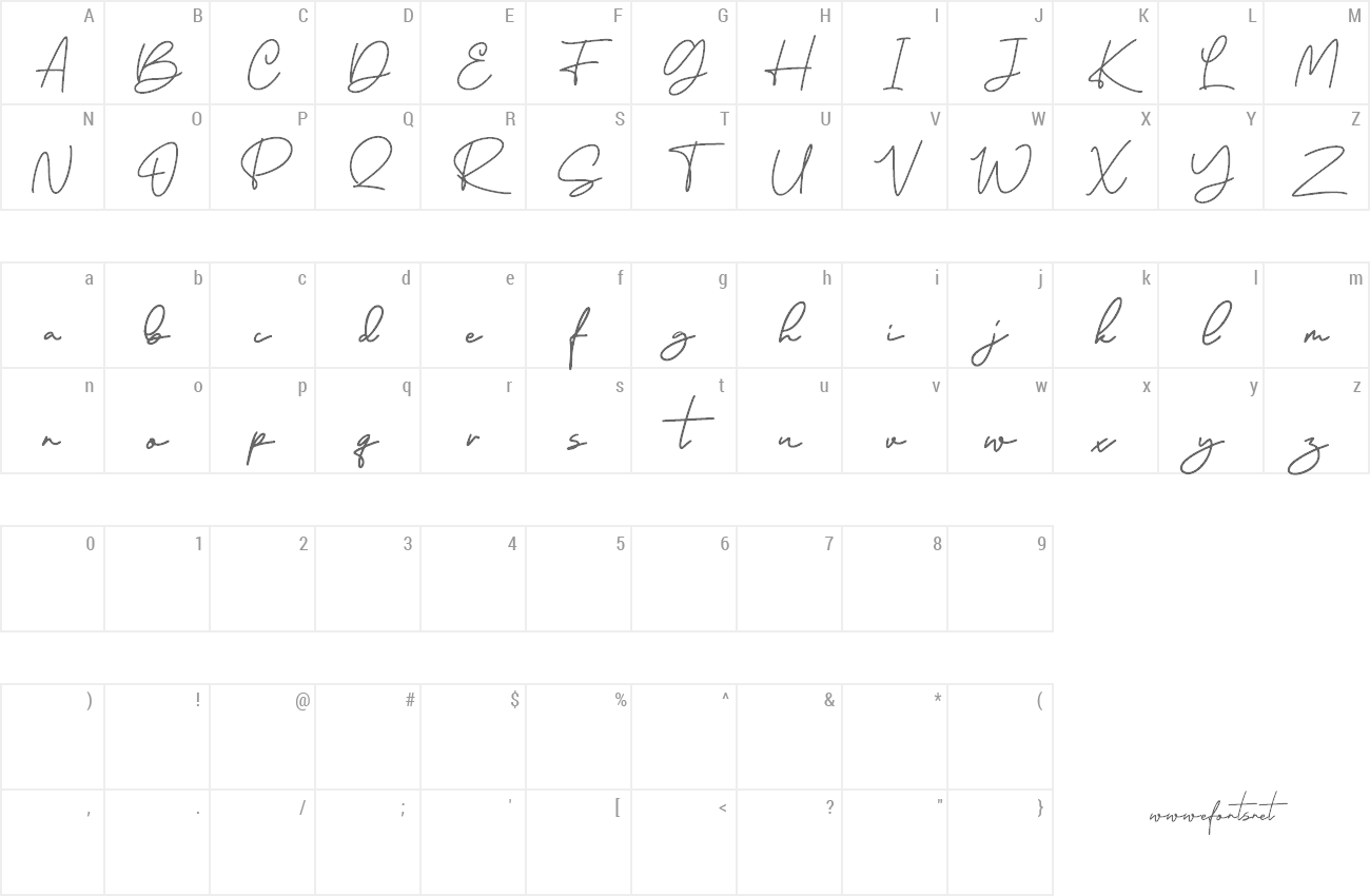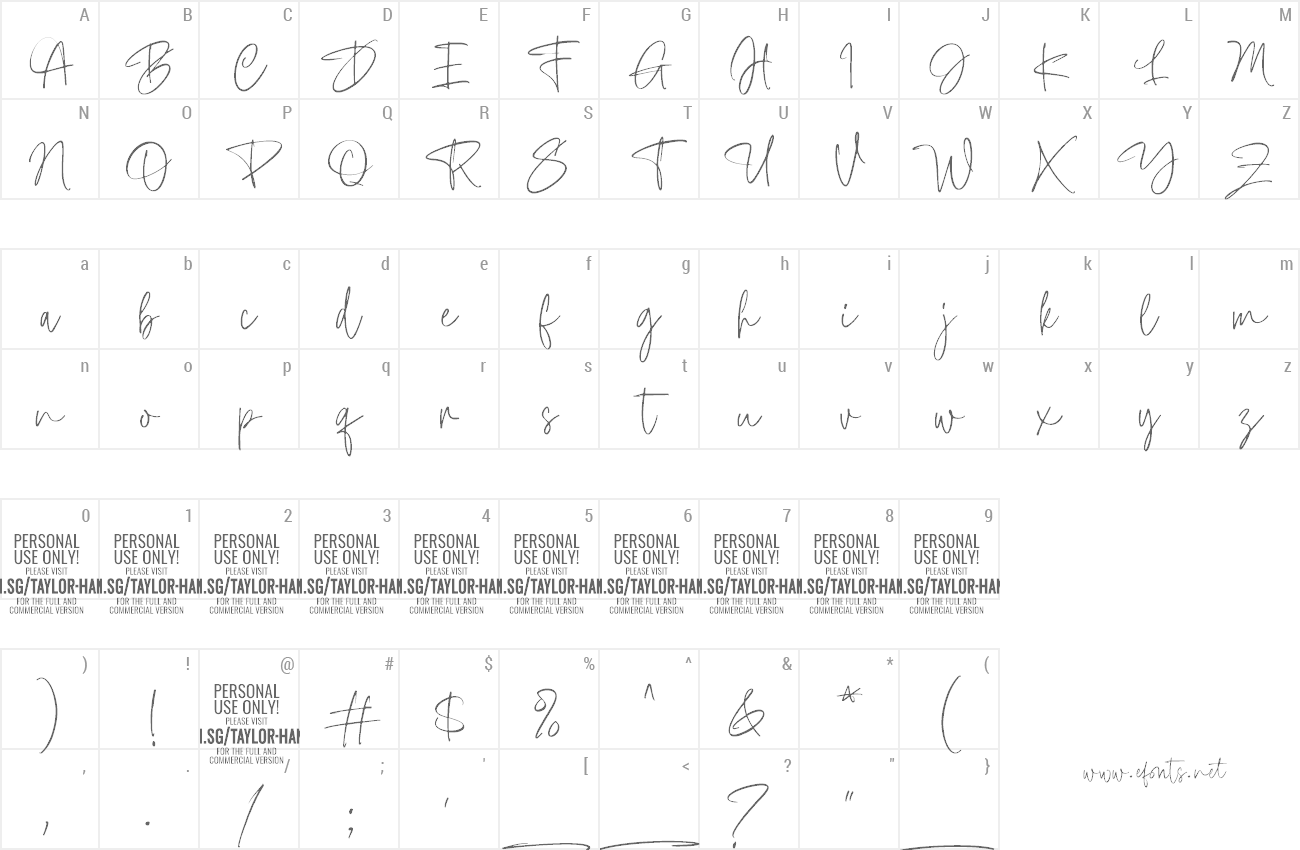 Sample characters Taylor Hand Font