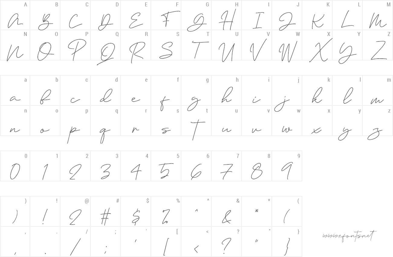 Sample characters Antariskalia Signature Font