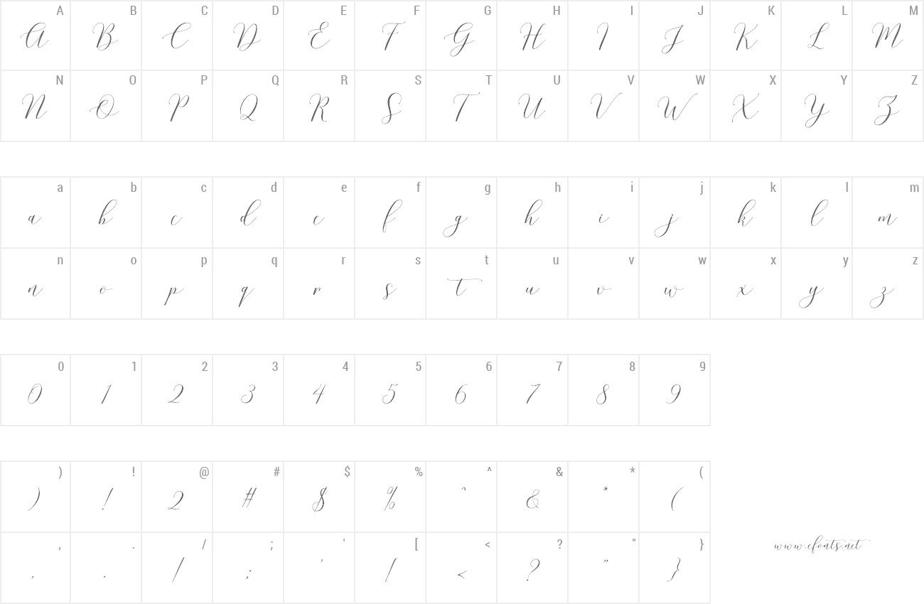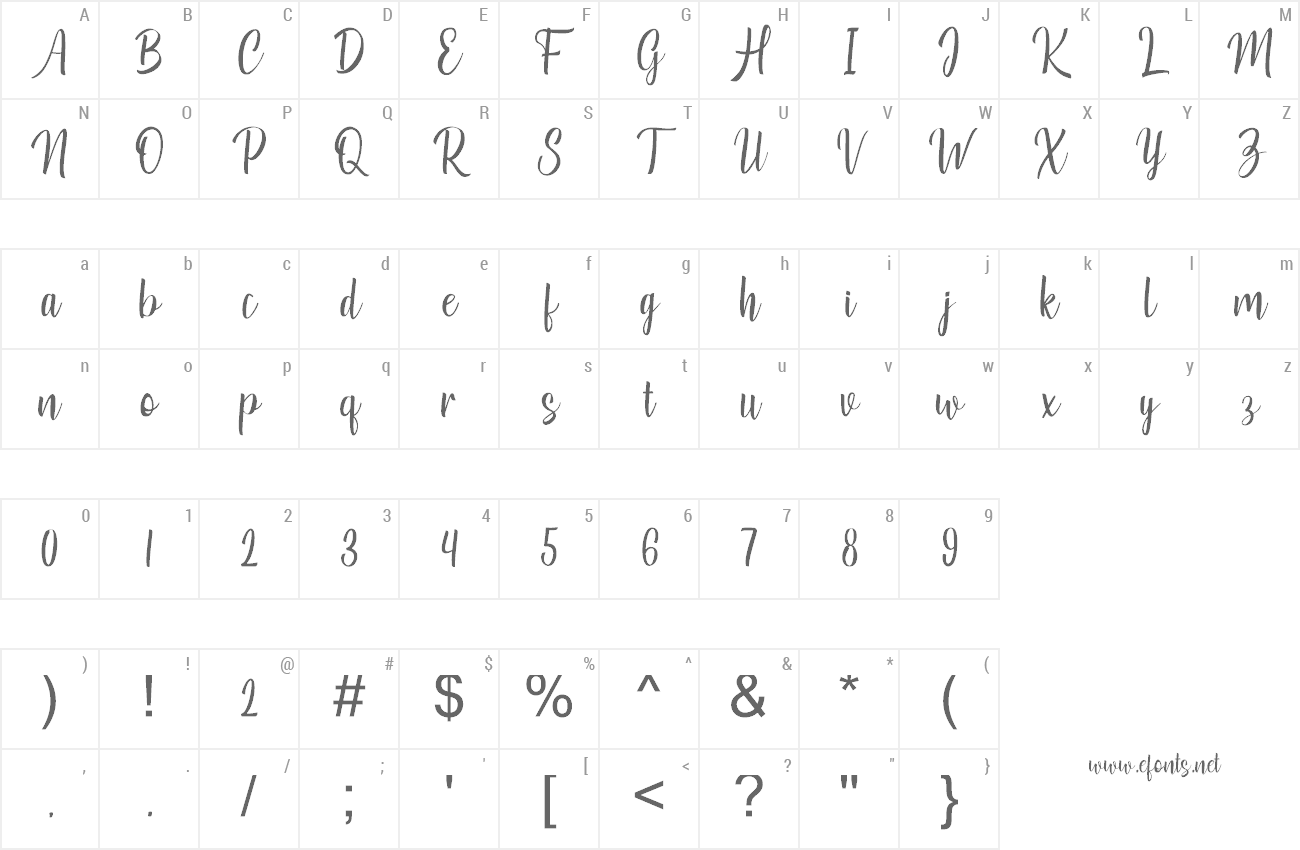 Sample characters Cherish Font