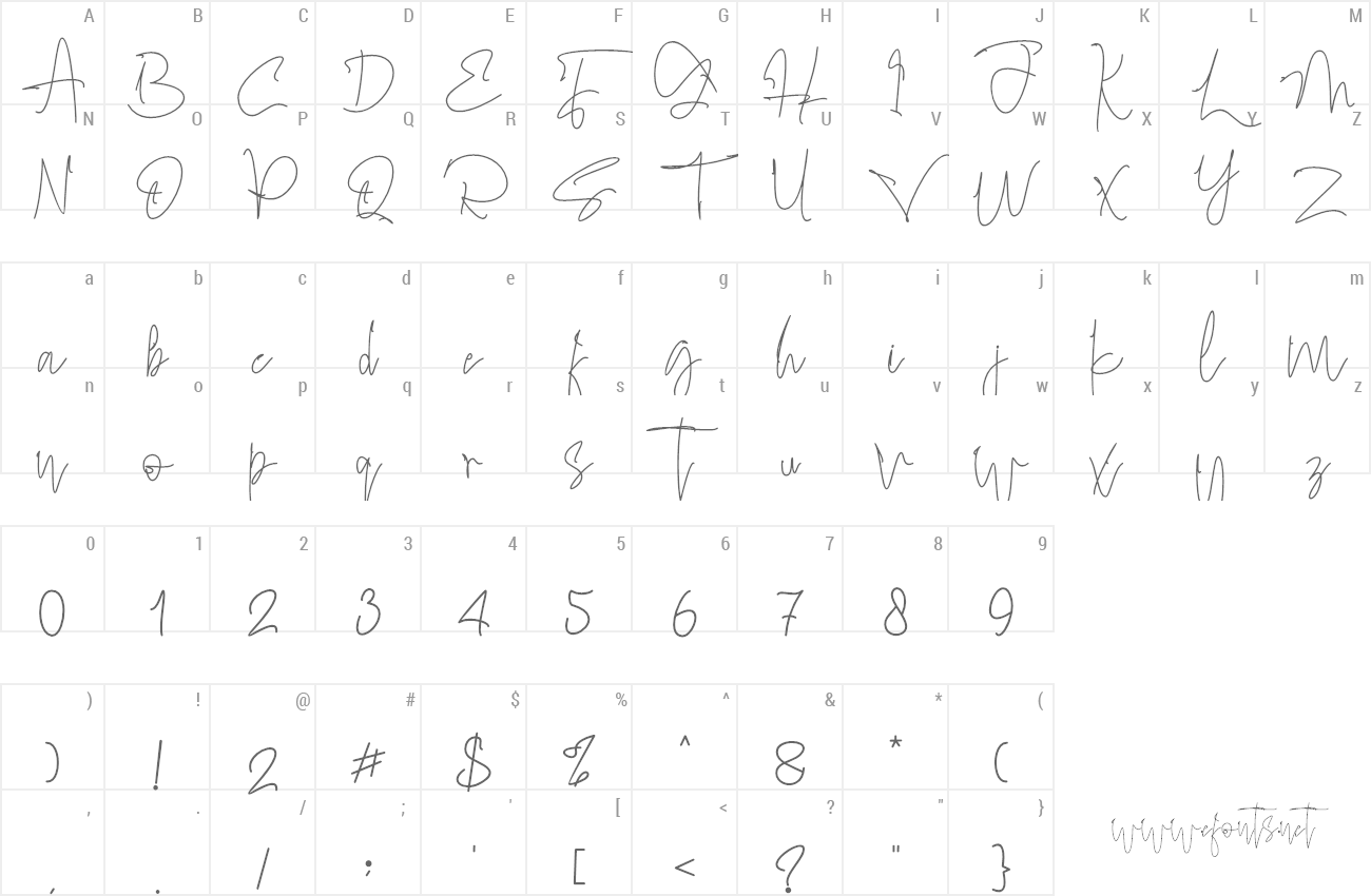 Sample characters Amallinda Script Font