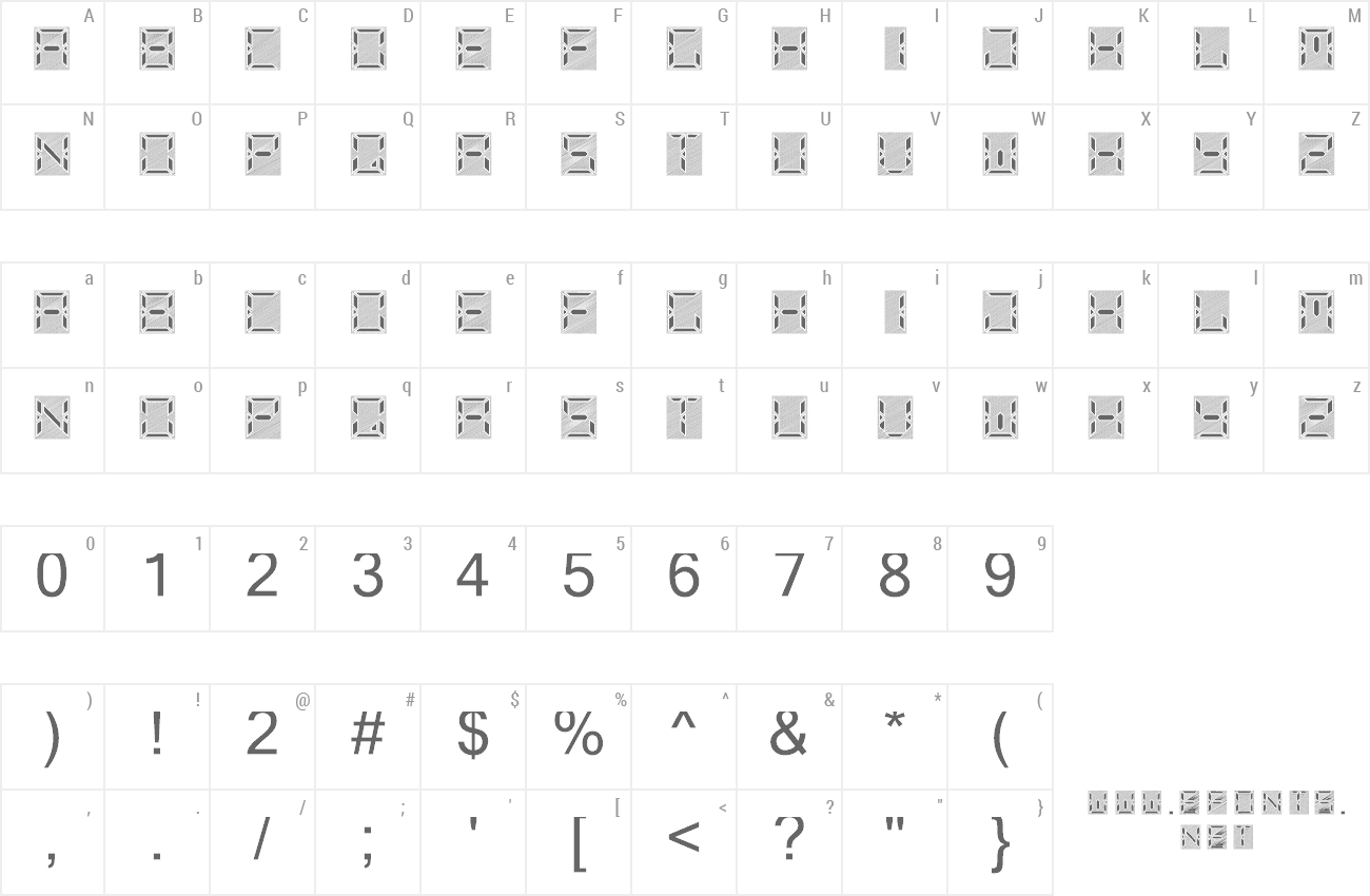 Sample characters Square Pixel7 Font